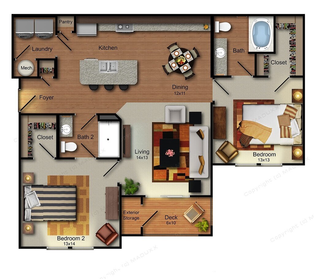 1 Bed, 1 Bath, 951-956 sq ftAvailable NowLargest 1 BedroomThis is the largest 1 Bedroom at this PropertyModel Gallery