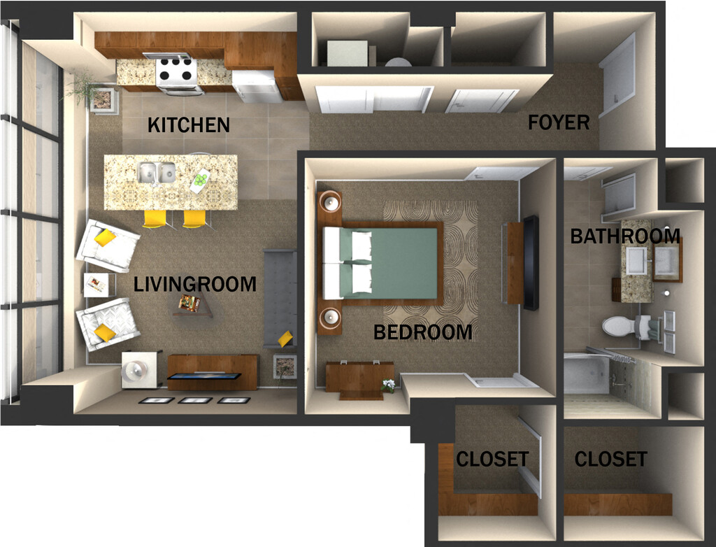 1 Bed, 1 Bath, 740 sq ftAvailable NowModel Gallery
