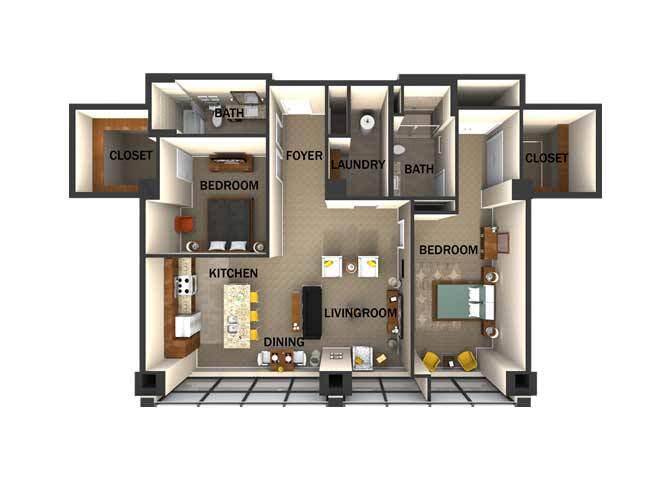 - Two Bedroom Suites Feature Two Full Bathrooms