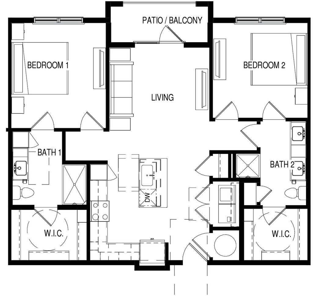 B - Floorplan 1 Apartment Unit: E201Apartment Model: B2 Bedroom, 2 Bath, 1021 sq ftAvailable NowApartment Unit: A201Apartment Model: B2 Bedroom, 2 Bath, 1021 sq ftAvailable NowFloorplan B3