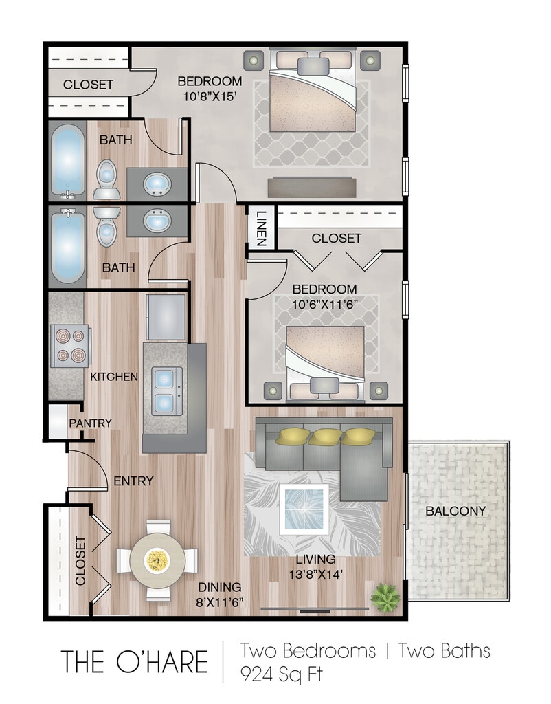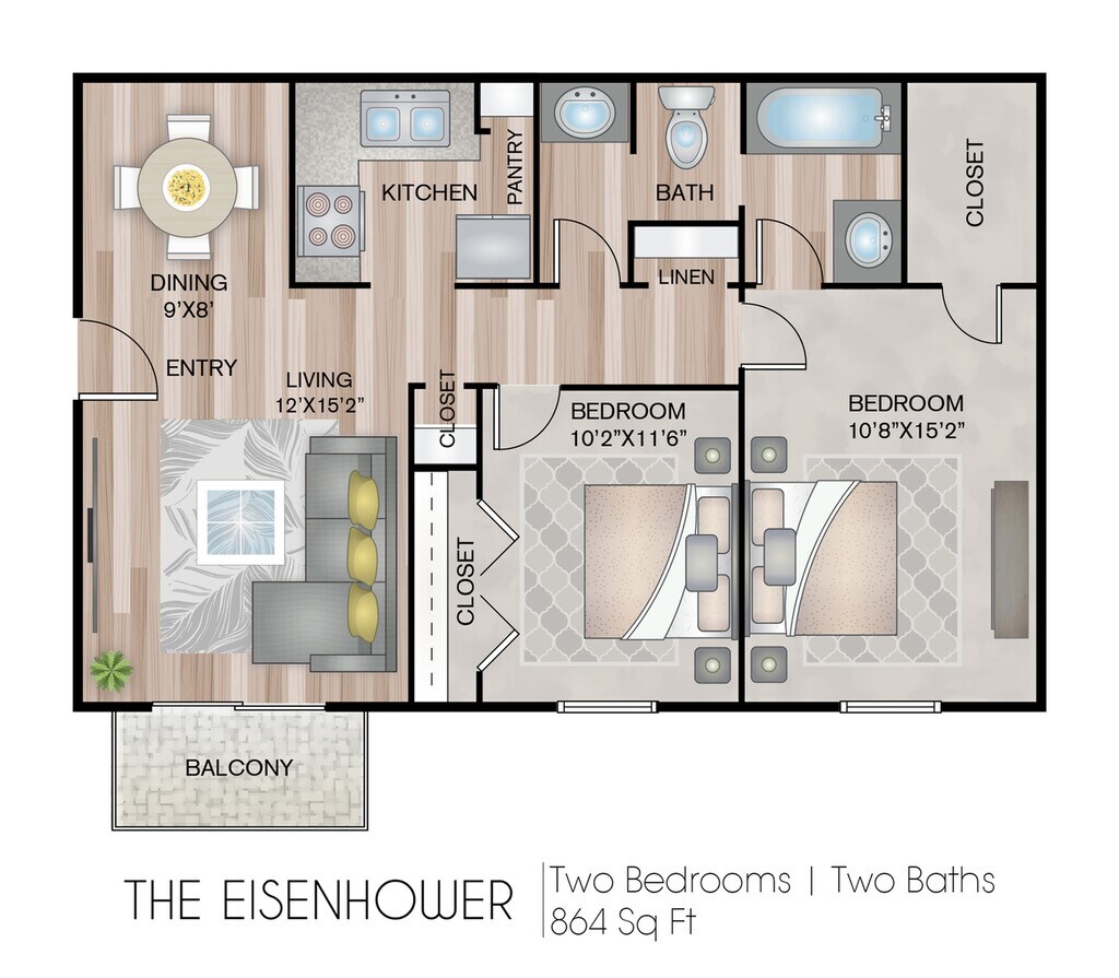 2 Beds, 1 Bath, 848 sq ftAvailable NowModel Gallery