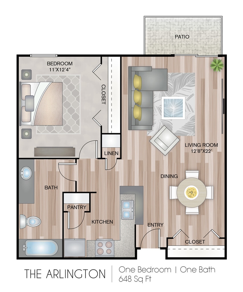 Apartment Model: The ArlingtonFrom $1,4901 Bedroom, 1 Bath, 648 sq ftAvailable Now![]()