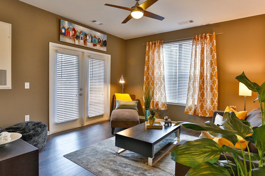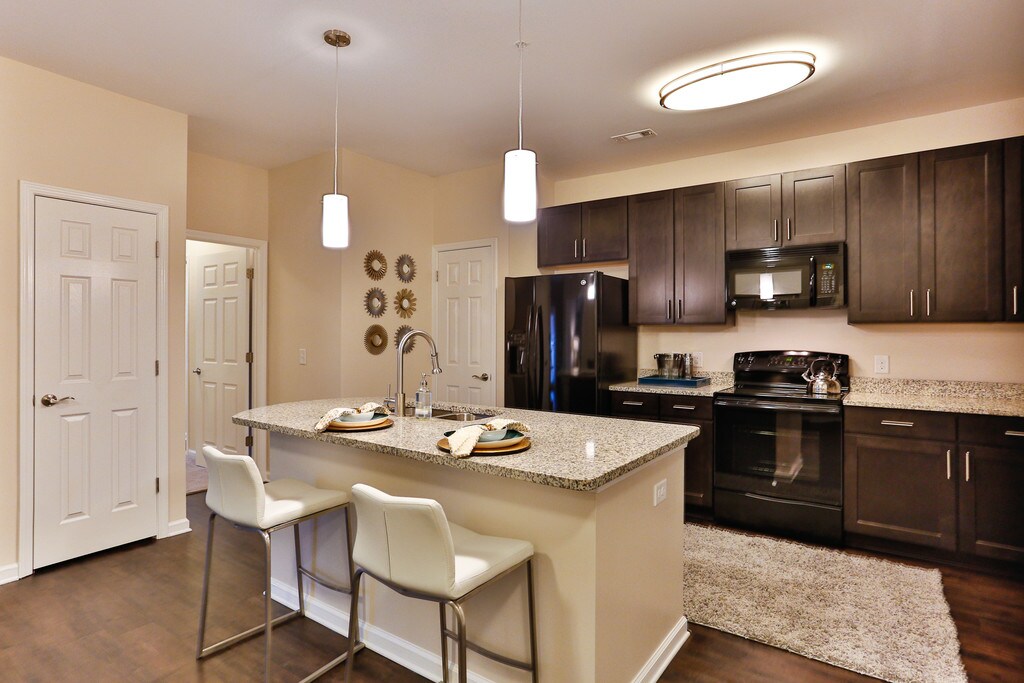 Upscale and new, our apartments in Charlotte, NC, offer one, two, and three-bedroom floorplans. All the residences include large living rooms, chef-inspired kitchens, and private patios or balconies. Elegant touches like wood-style floors, nine-foot ceilings, granite countertops, and black-colored modern appliances help further elevate the aesthetic. In terms of storage spaces, you have a pantry, a coat closet, and large closets to help keep your belongings organized