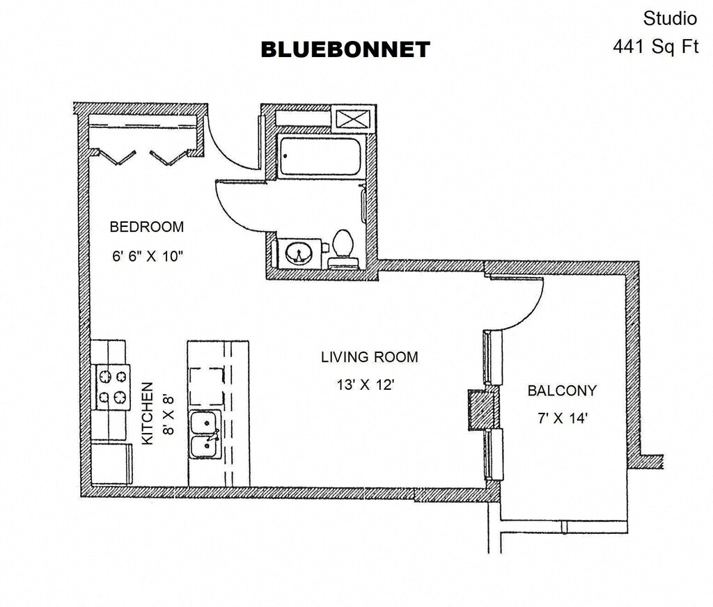 Studio, 1 Bath, 441 sq ftAvailable NowModel Gallery