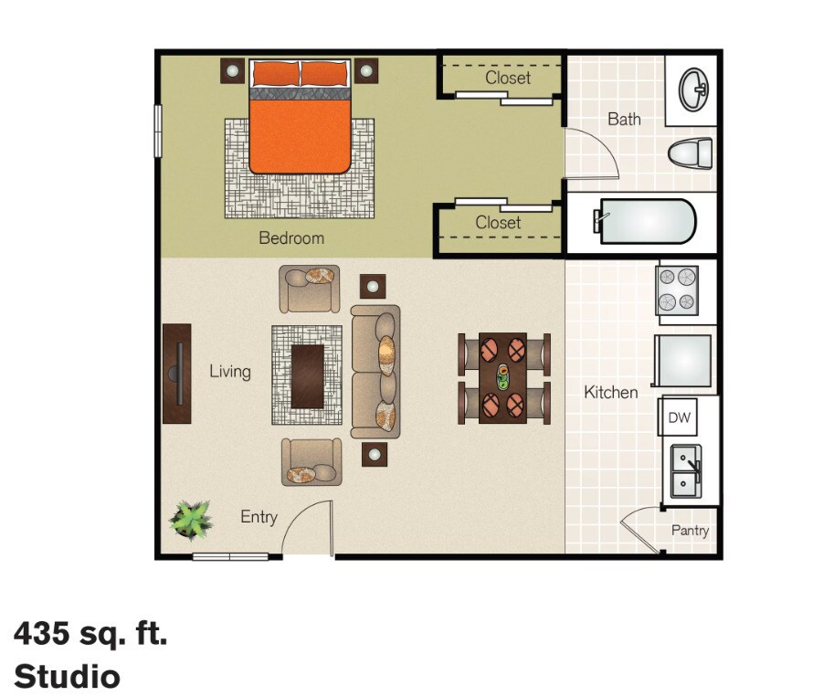 Studio, 1 Bath, 435 sq ftAvailable NowModel Gallery