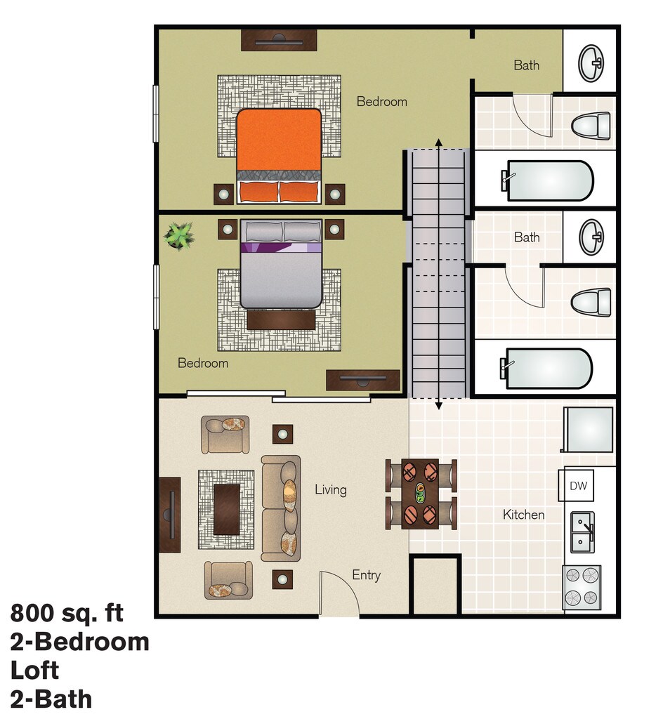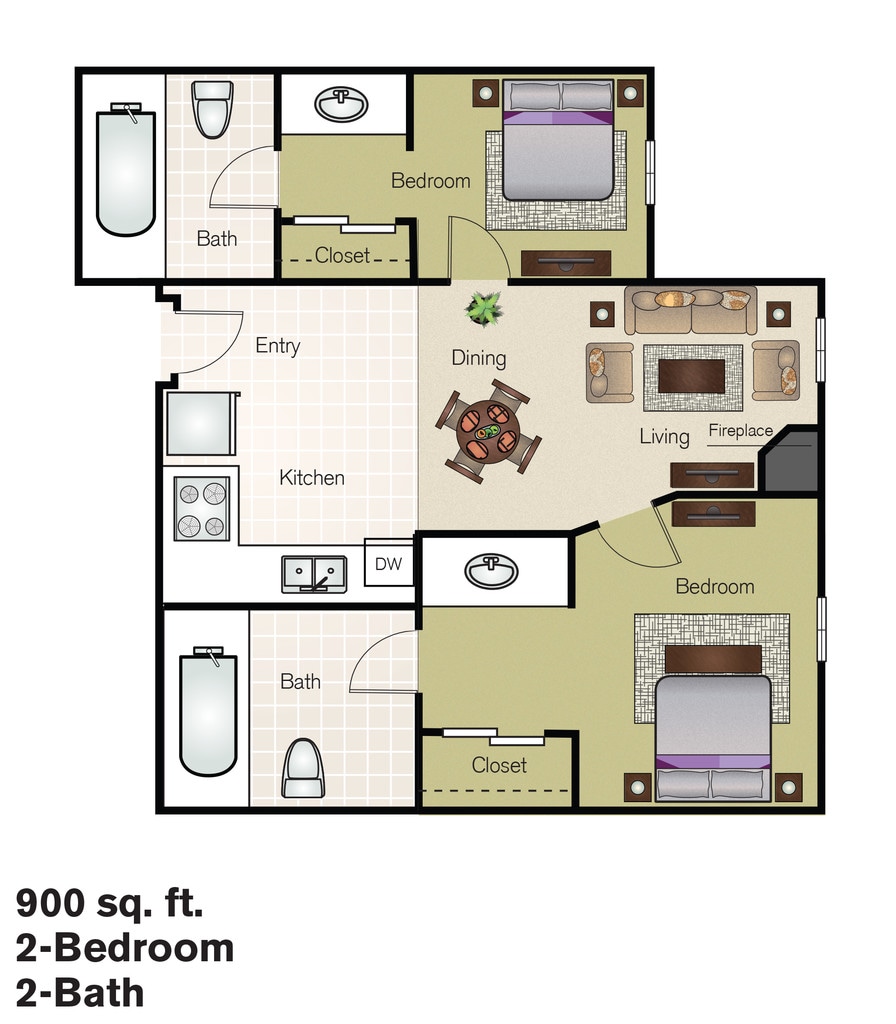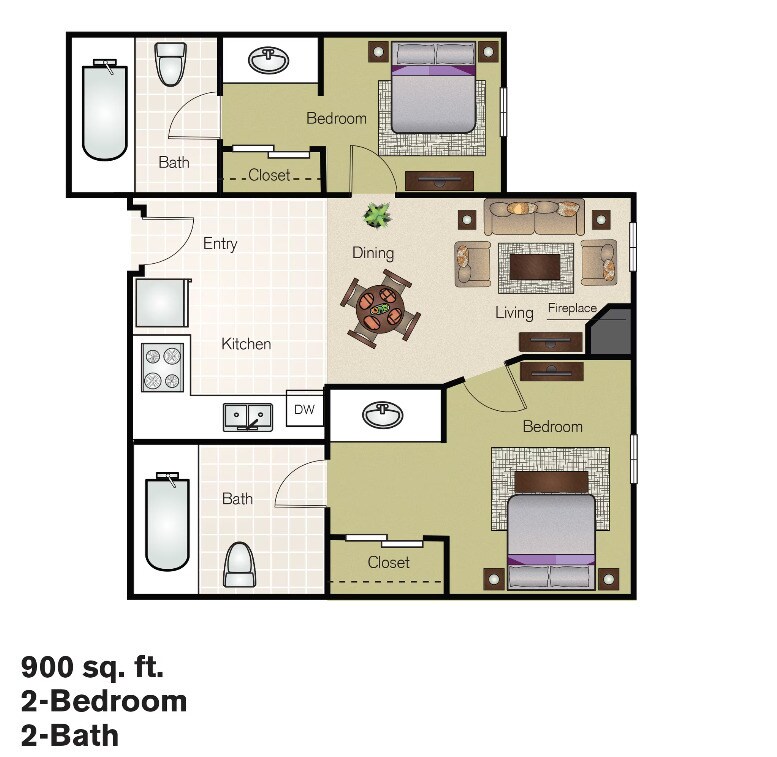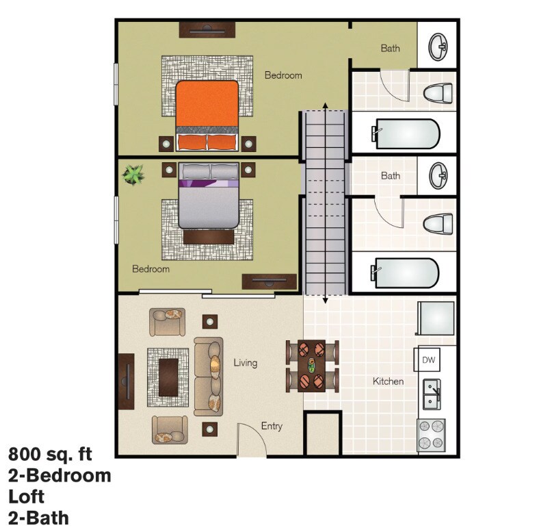 2 Beds, 2 Baths, 800 sq ftAvailable NowModel Gallery