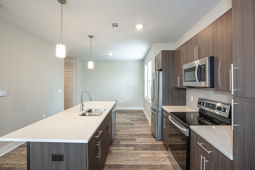 Welcome to Residences at Echelon Apartments, the premier apartments for rent in Lees Summit! As a resident, you'll enjoy modern interior design in our one-, two-, and three-bedroom apartments, along with an extensive selection of unparalleled amenities. All our floorplans offer high-end features and sleek finishes, such as stainless-steel appliances, hardwood-style plank flooring, French door refrigerators, quartz countertops, USB jacks, 9 to 12 ft ceilings, large windows, two-inch faux-wood blinds, walk-in closets, full-size washers/dryers, and a private balcony! Detached and attached garages are also available for rent. At Residences at Echelon Apartments, you will experience an array of upscale amenities focused on comfort and luxury. Get toned in our fitness center with yoga and spin rooms or take a dip in our resort-style swimming pool with a cabana area and water features. Our inviting clubhouse offers a conference room, coffee and tea bar, and media room. Residents will also enjoy our on-site dog park and pet spa, pickleball court, outdoor firepit area, community garden, picnic area with BBQ grills, car rinse station, electric car charging station, playground, and so much more. Choose the floorplan that fits your lifestyle and call our friendly leasing staff to schedule a tour of your new home!