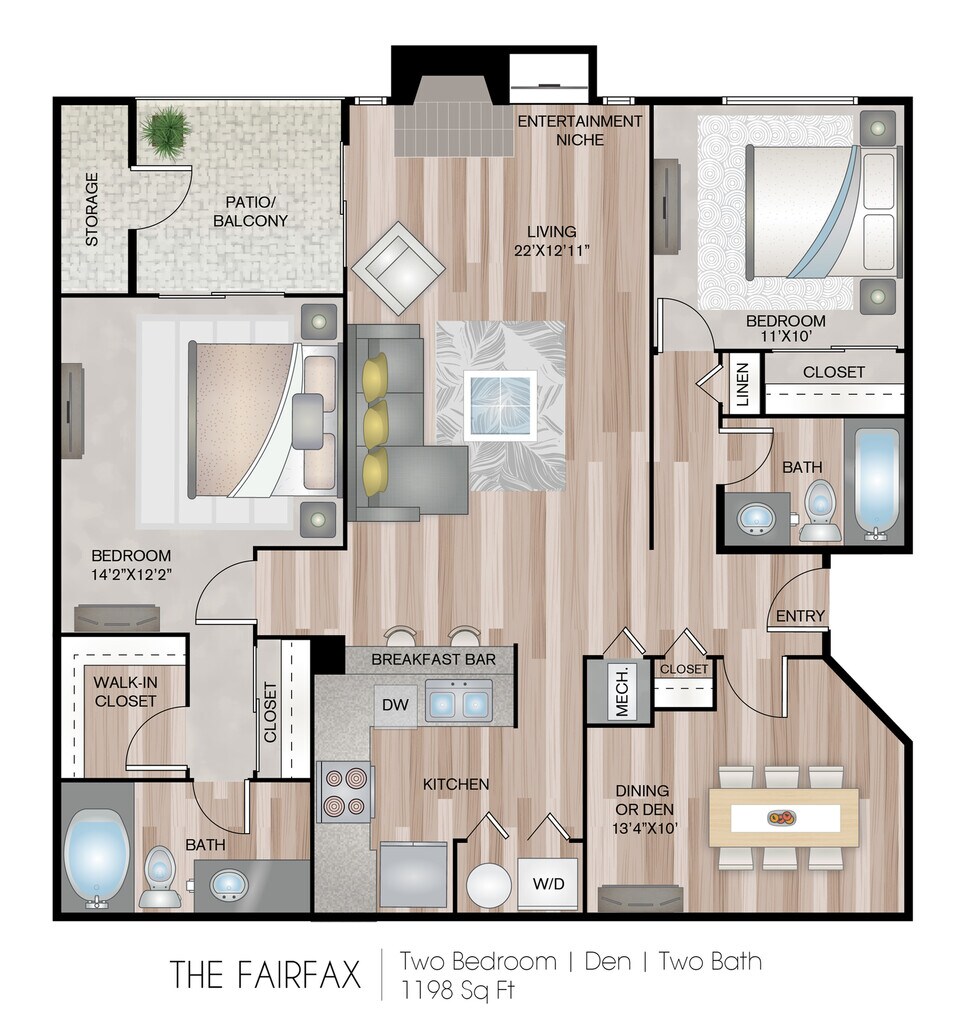 2 Beds, 2 Baths, 1198 sq ftAvailable NowModel Gallery