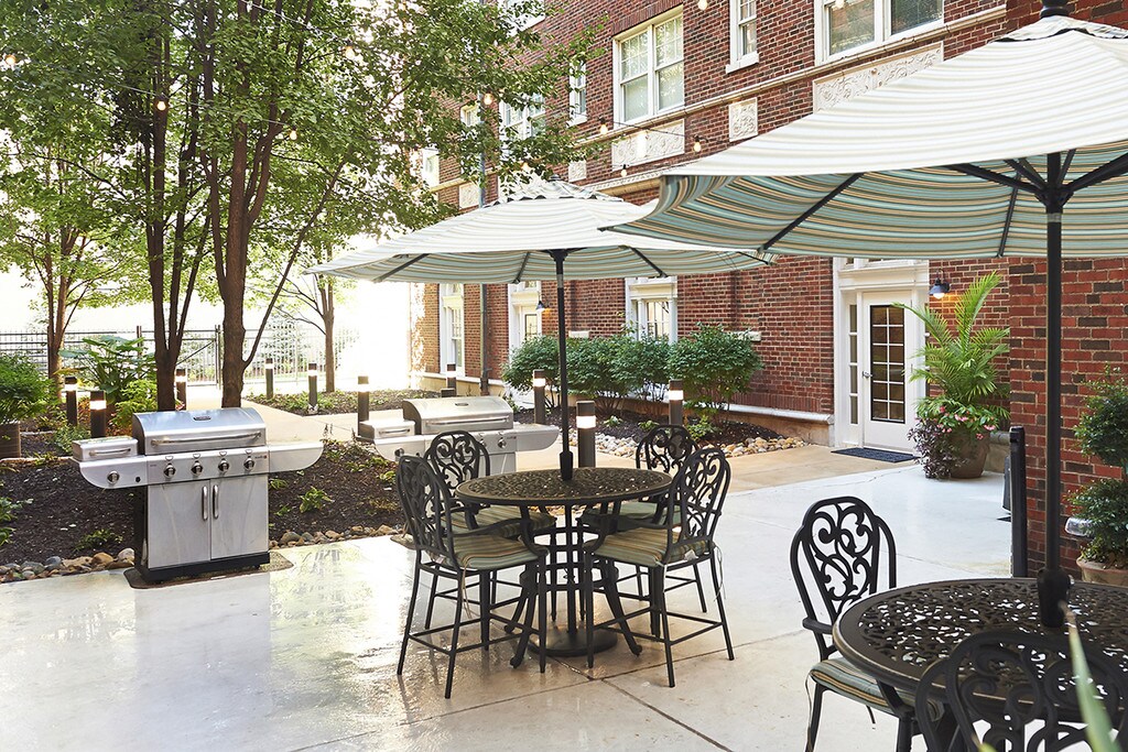 - Two courtyards with outdoor patio seating and gas grills