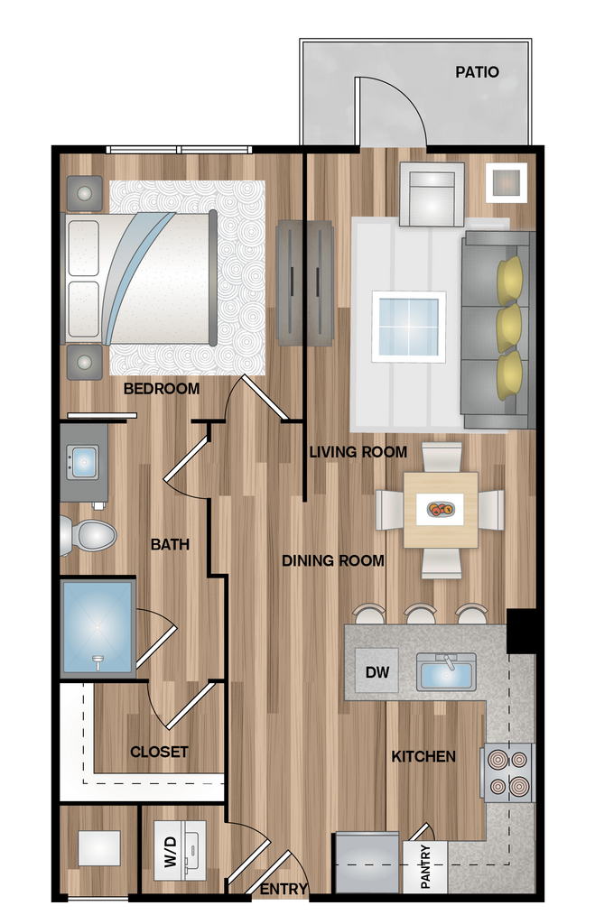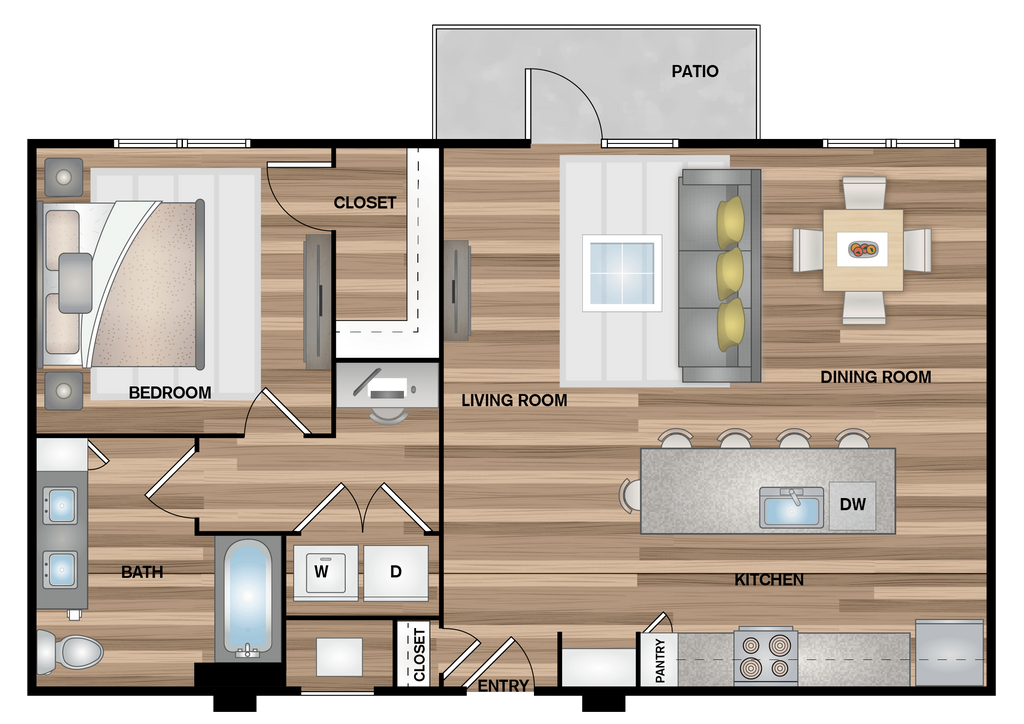 1 Bed, 1 Bath, 672 sq ftAvailable NowModel Gallery