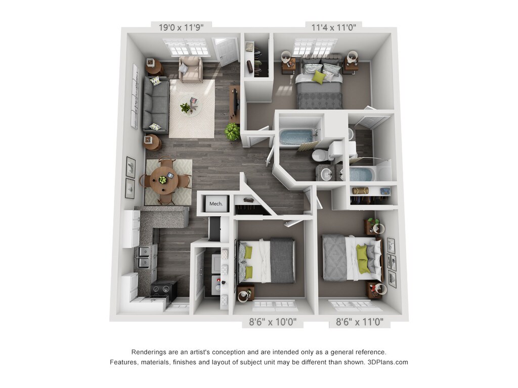 3 Beds, 2 Baths, 980 sq ftAvailable NowModel Gallery