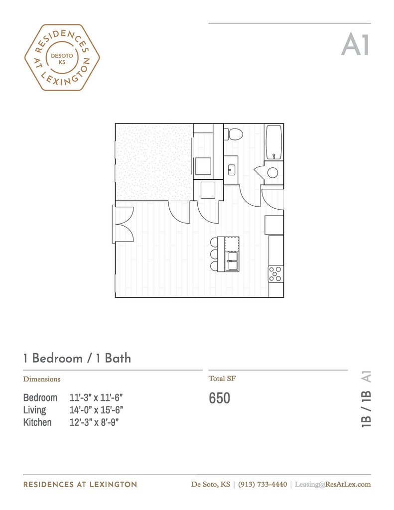 Apartment Model: A1From $1,1951 Bedroom, 1 Bath, 650 sq ftAvailable February 27, 2026![]()