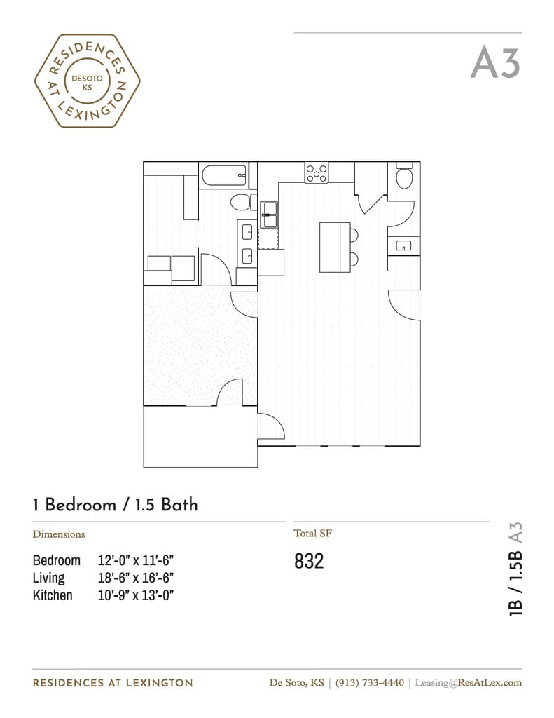 Apartment Model: A3From $1,4951 Bedroom, 1.5 Bath, 832 sq ftAvailable Now![]()