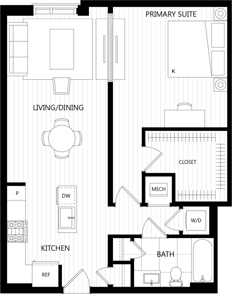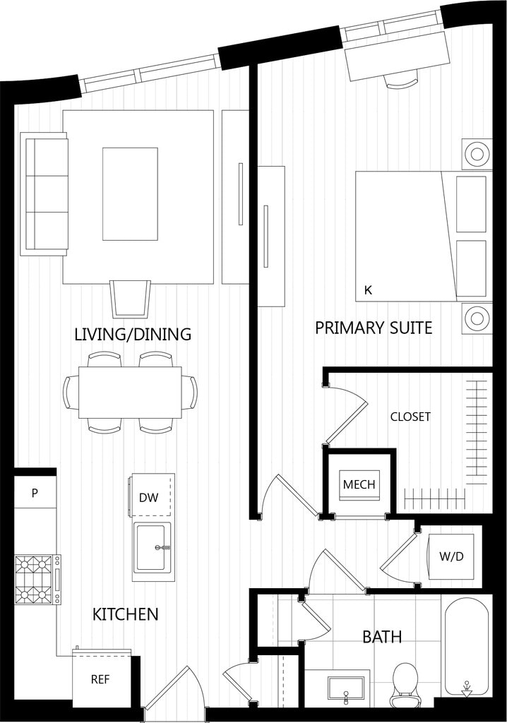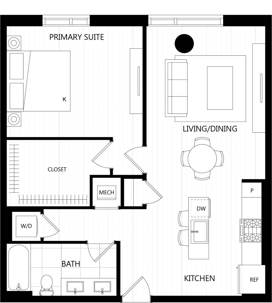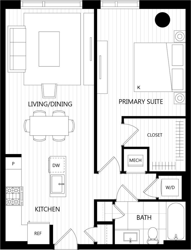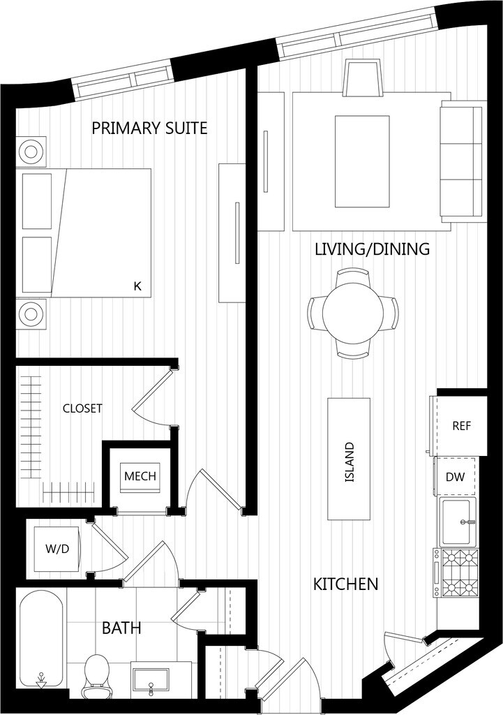 Studio/1 Bath-A1M - Floorplan 1 Apartment Unit: 602Apartment Model: Studio/1 Bath-A1M$2,625Studio, 1 Bath, 542 sq ftAvailable Now1 Bedroom