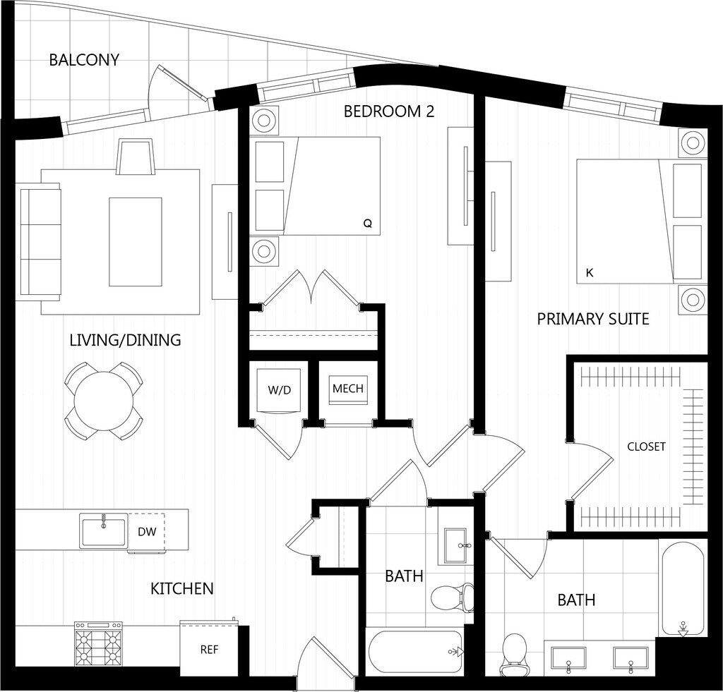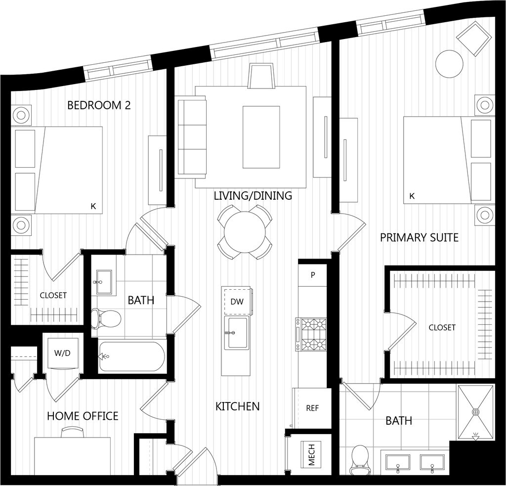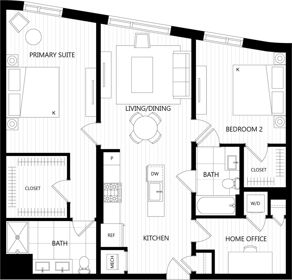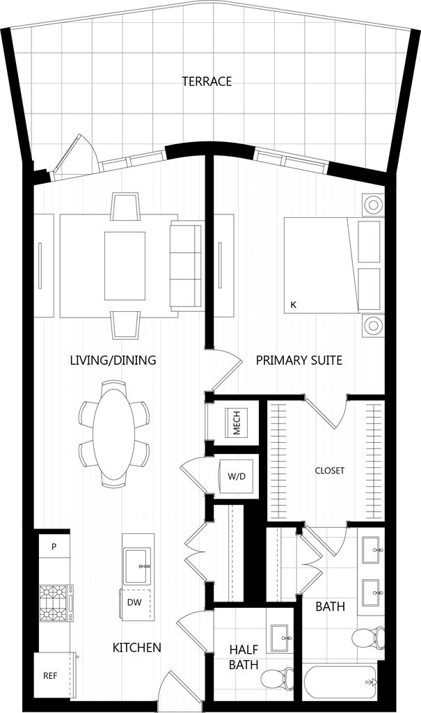 1 Bed, 1 Bath, 617 sq ftAvailable NowModel Gallery