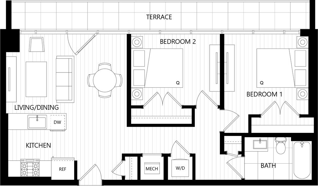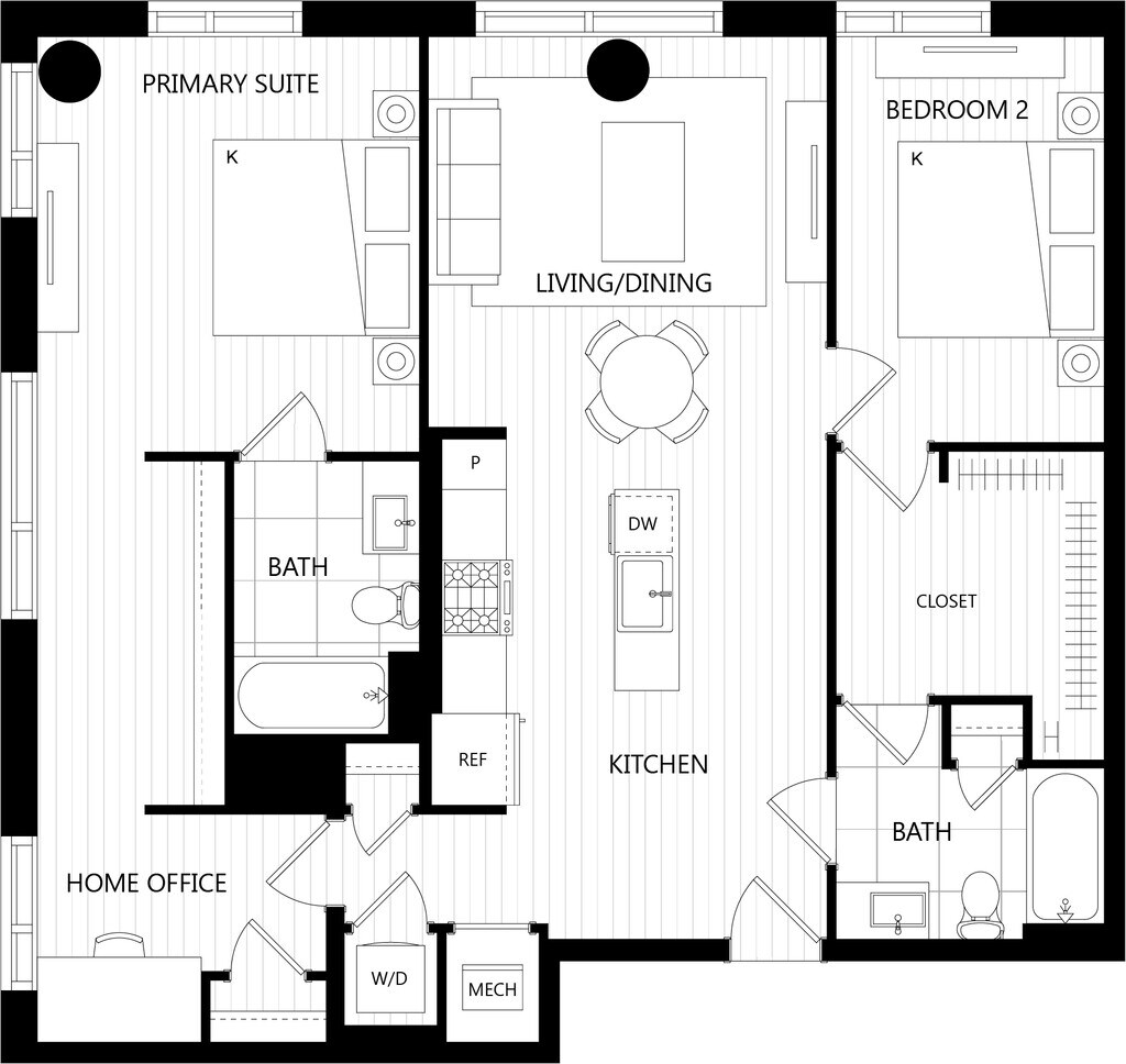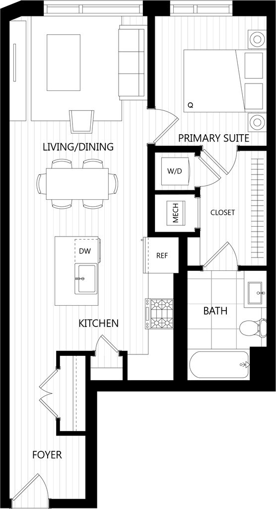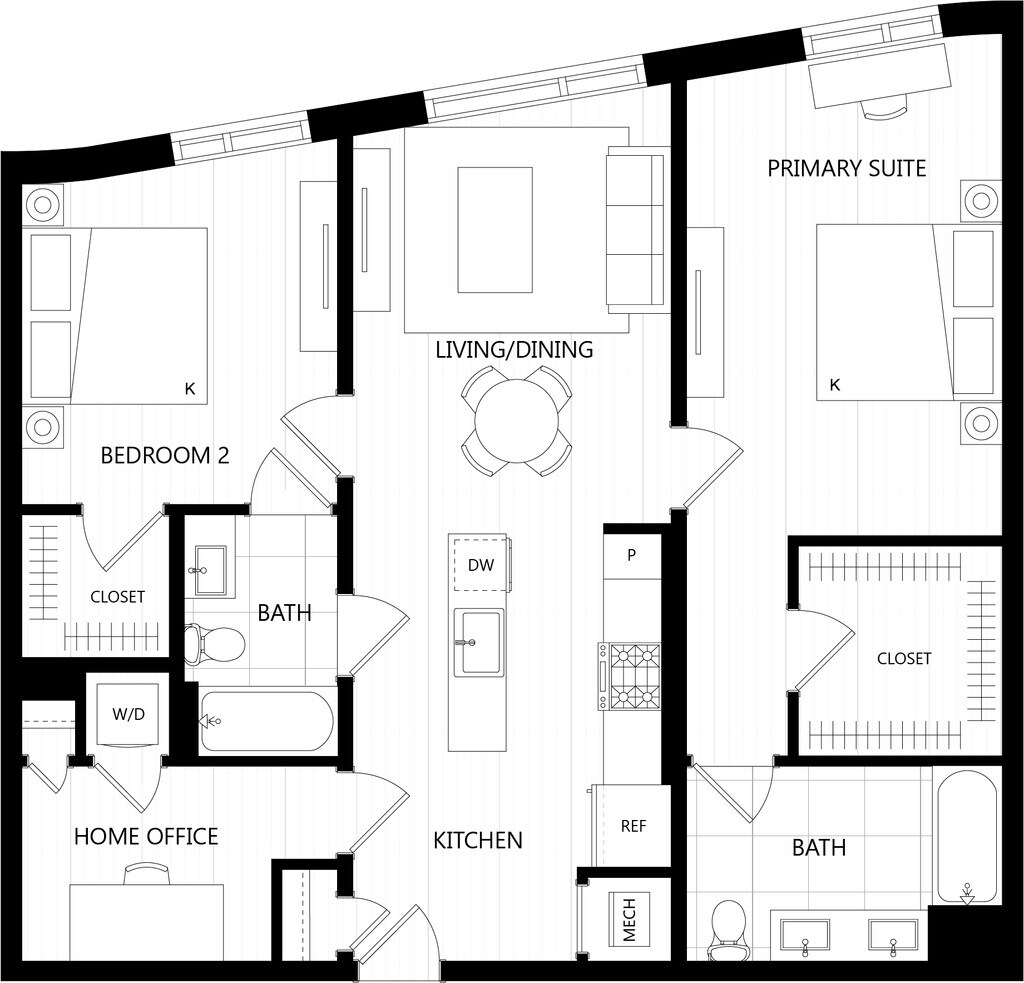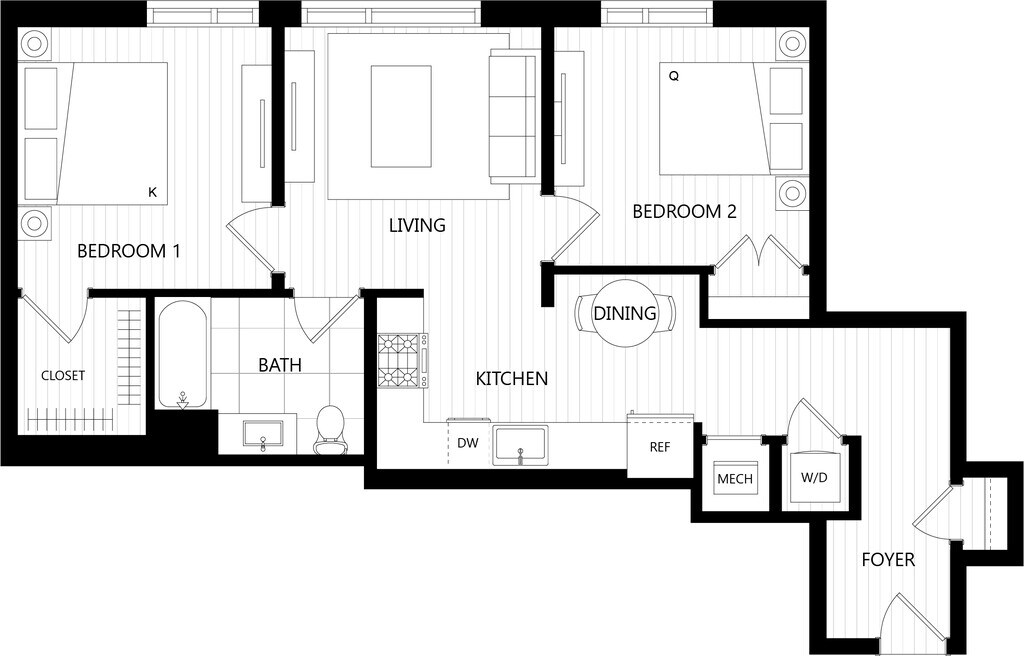 1 Bed, 1 Bath, 617 sq ftAvailable NowModel Gallery