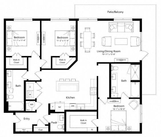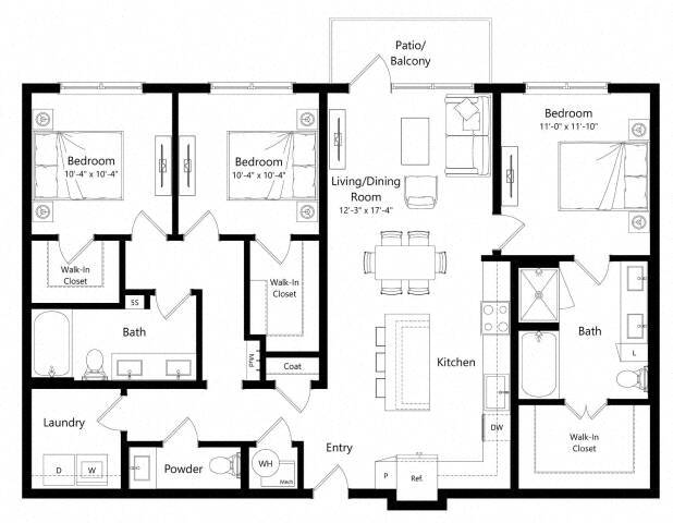 Apartment Model: A3Call For Rates1 Bedroom, 1 Bath, 818 sq ftUnavailableFloor plans are artist's rendering. All dimensions are approximate. Actual product and specifications may vary in dimension or detail. Not all features are available in every rental home. Prices and availability are subject to change. Base rent is based on monthly frequency. Additional fees may apply, such as but not limited to package delivery, trash, water, amenities, etc. Deposits vary. Please see a representative for details.