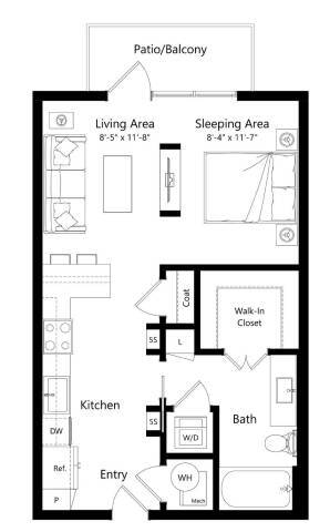 S1 - Floorplan 1 Apartment Unit: 1439Apartment Model: S1$1,510Studio, 1 Bath, 570 sq ftAvailable Now1 Bedroom