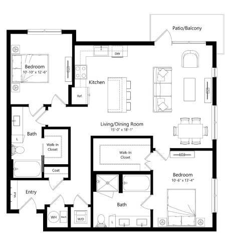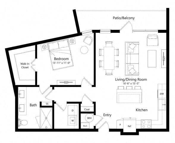 1 Bed, 1 Bath, 723-745 sq ftAvailable NowModel Gallery