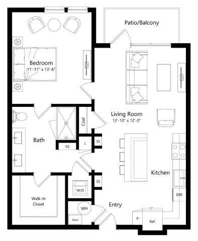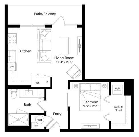 A0 - Floorplan 1 Apartment Unit: 1444Apartment Model: A0$1,5701 Bedroom, 1 Bath, 601 sq ftAvailable NowFloorplan A1