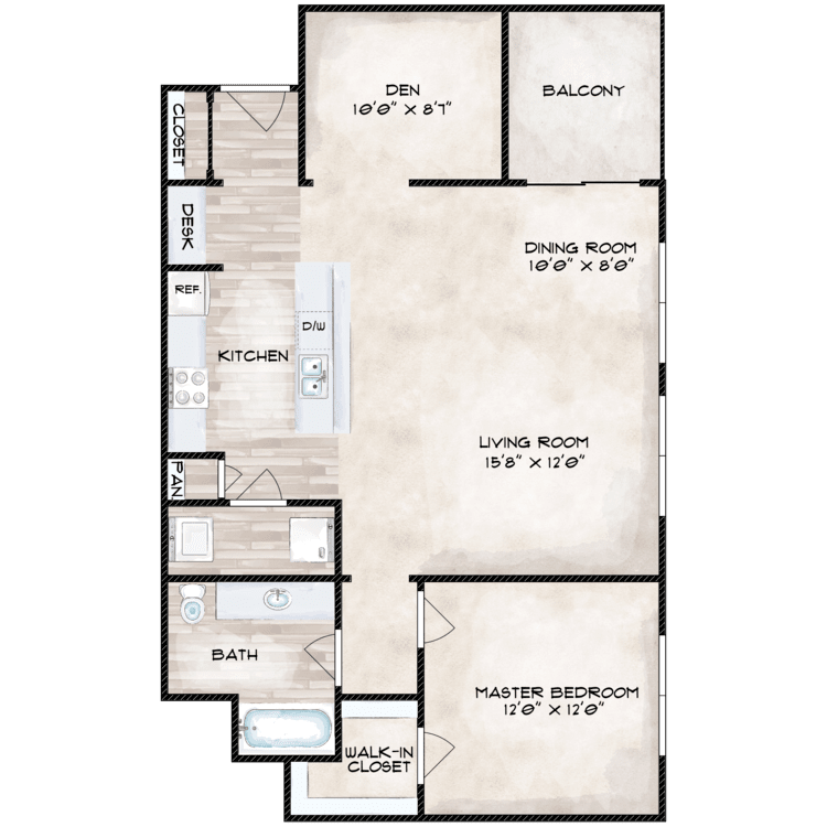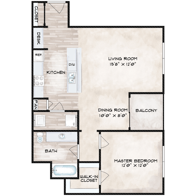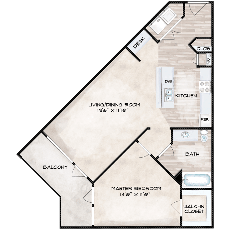 Studio, 1 Bath, 568 sq ftAvailable NowModel Gallery