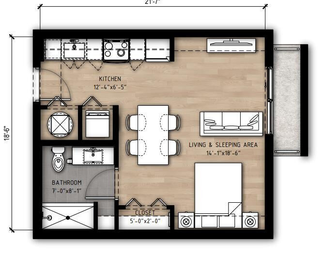 0 Bed 1 Bath - Floorplan 1 1 Bedroom