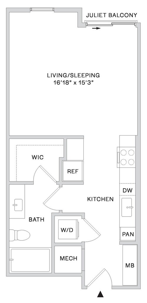 Studio, 1 Bath, 510-613 sq ftAvailable NowModel Gallery