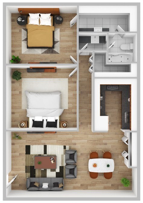 2 Beds, 1 Bath, 860 sq ftAvailable NowCheapest 2 BedroomThis is the cheapest 2 Bedroom at this PropertyModel Gallery