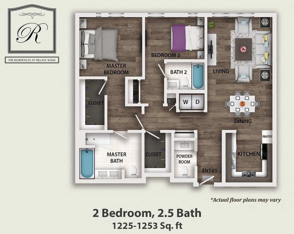 2 Bedroom, Bonus Closet, 2.5 Bath - Floorplan 1 Apartment Unit: 209Apartment Model: 2 Bedroom, Bonus Closet, 2.5 Bath2 Bedroom, 2.5 Bath, 1253 sq ftAvailable January 30, 2026![]()