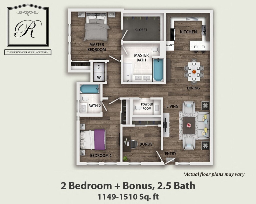 2 Bedroom Plus Bonus Room - Floorplan 1 Apartment Unit: 124Apartment Model: 2 Bedroom Plus Bonus Room2 Bedroom, 2.5 Bath, 1510 sq ftAvailable December 19, 2025![]()