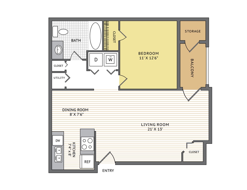 1 Bed, 1 Bath, 730 sq ftAvailable NowModel Gallery