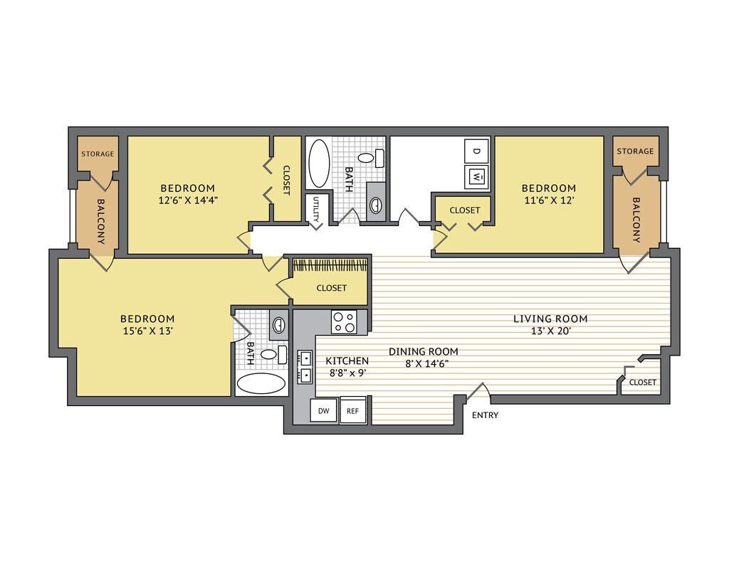 1 Bedroom to 3 Bedroom Apartments at Residences at West Mint currently range from $1,025 to $2,445