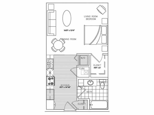 Apartment Model: E1$1,025Studio, 1 Bath, 525 sq ftAvailable March 14, 2026![]()