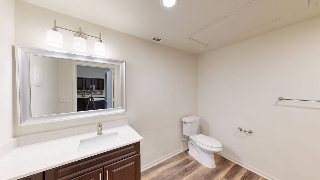 - Wood plank flooring throughout