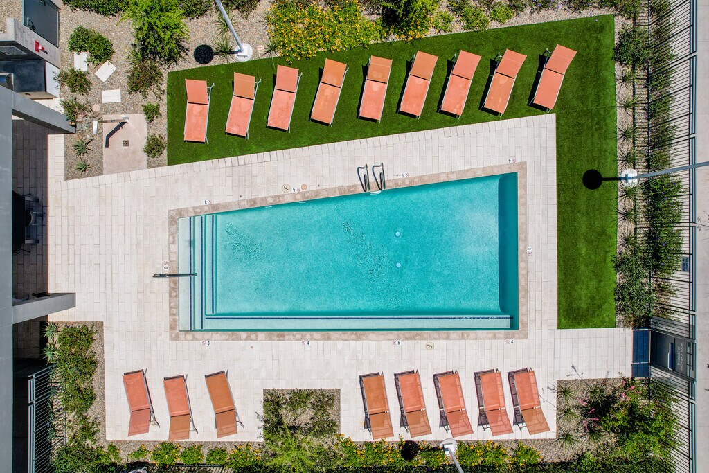 A stunning, modern community, Residences on First Apartments provides comfortable and vibrant living steps away from Downtown Mesa. Our one and two bedroom apartments feature gourmet kitchens with quartz countertops and modern cabinetry, stainless steel appliances, energy saving LED lighting, smart thermostats, and washers and dryers. Select homes feature a private patio or balcony. Community amenities range from on-site coffee bar to parcel lockers and a luxury swimming pool with a large deck and plenty of comfortable deck chairs. We offer online resident services, onsite cardboard recycling, onsite management and 24-hour maintenance. Visit Main Street in Downtown Mesa nearby for a full day of shopping and entertainment or an evening of delicious dining and socializing. Along Main Street, just blocks from your apartment, you will find over 25 restaurants, including Chupacabra Taproom with online review of 4.9 stars. We'd be remiss if we didn't mention Gus’s World Famous Fried Chicken, Worth Takeaway, and Buddha's Brew Coffee Cafe – all with 4.6 stars or higher. At Gus’s the chicken is amazing, and we absolutely love their mac and cheese and fried green tomatoes. We’re also only one block from the Mesa Contemporary Arts Museum, the Nesbitt/Elliott Playhouse, Mesa Arts Center and Encore Theatre. Residences on First Apartments is two blocks from the Nile Theater, and only three blocks from the Arizona Museum of Natural History. Speaking of convenience, our apartments are 5 miles from Mesa Community College, 6.3 miles from Arizona State University in Tempe, 8.2 miles from The University of Arizona campus, and only 9 miles from A.T. Still University. Imagine living in apartments close to all these great locations! Residences on First Apartments in Mesa, AZ is less than half a mile from a light rail station on W Main Street. Plus, Residences on First is three blocks east of Country Club Drive and only 7 minutes to Highway 60. From there you can make your way to anywhere in the Valley. Call or email us today to learn of current availability and touring options. We look forward to speaking with you and taking you on a personal tour of our wonderful new apartment community.