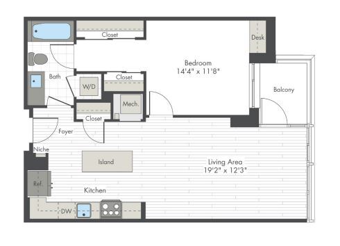 1 Bed, 1 Bath, 760 sq ftAvailable NowModel Gallery