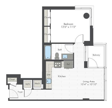 Studio, 1 Bath, 625 sq ftModel Gallery