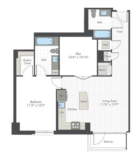 1 Bed, 1 Bath, 639 sq ftAvailable NowModel Gallery