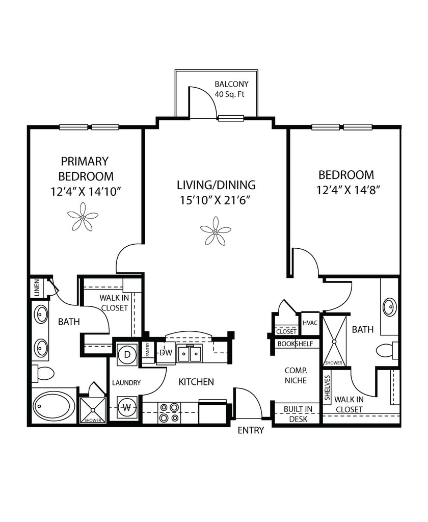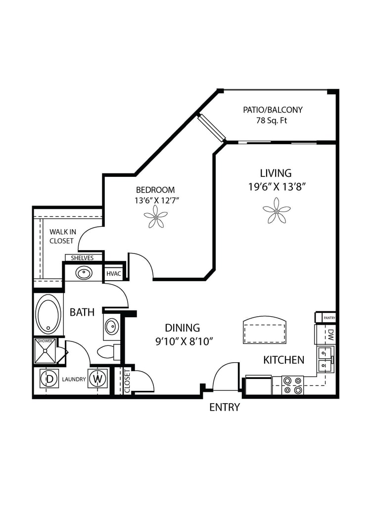 1 Bed, 1 Bath, 766 sq ftAvailable NowModel Gallery