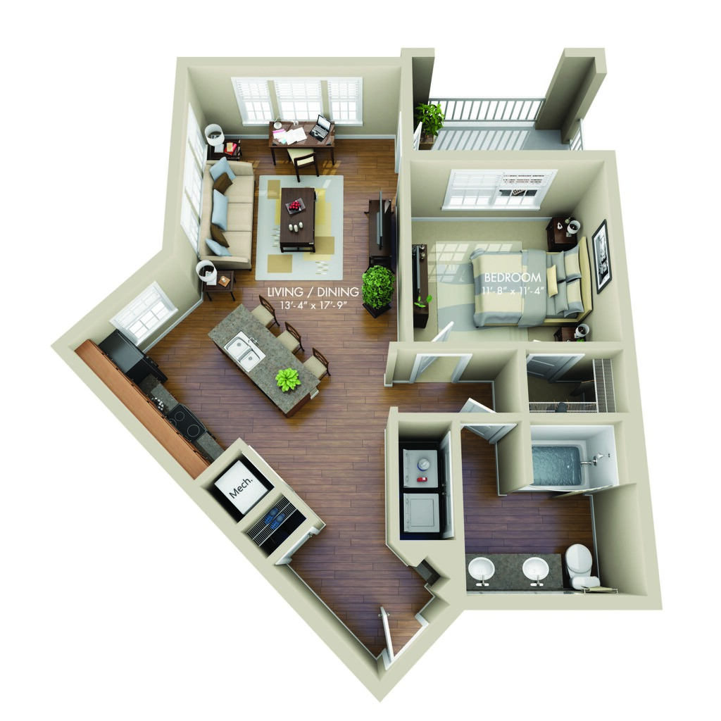 1 Bed, 1 Bath, 847 sq ftAvailable NowModel Gallery