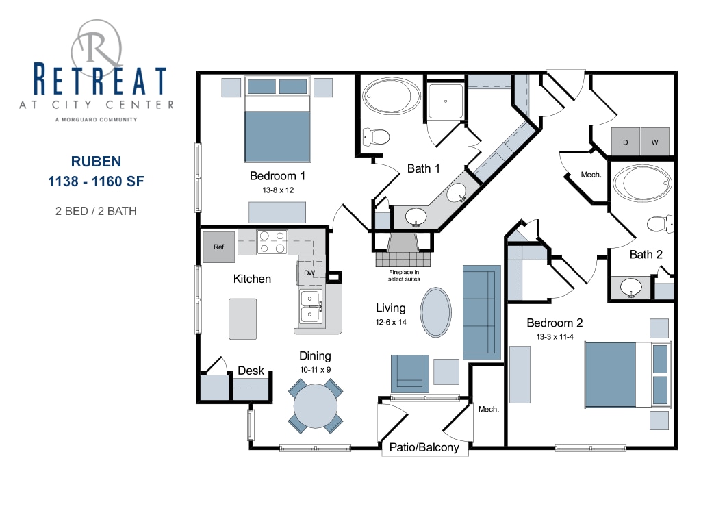 Retreat at City Center offers 1 to 3 Bedroom apartments starting from $1,491 and having 647–1,376 sq ft. Here is the current pricing and availability: