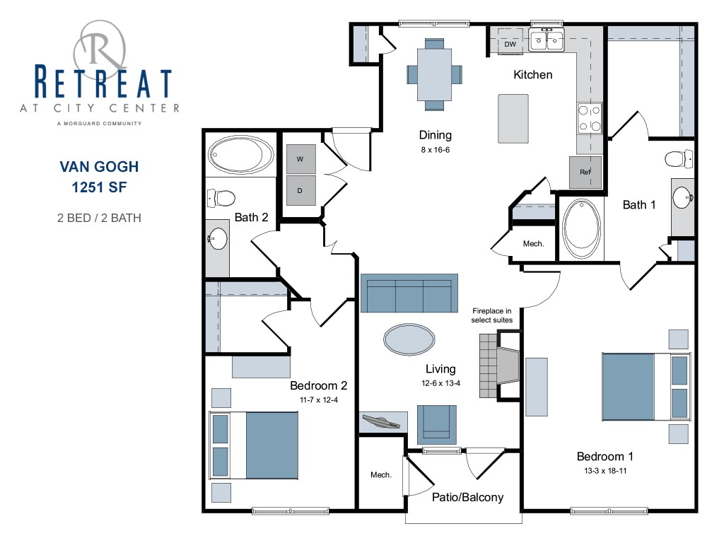 1 Bedroom to 3 Bedroom Apartments at Retreat at City Center currently range from $1,491 to $2,952