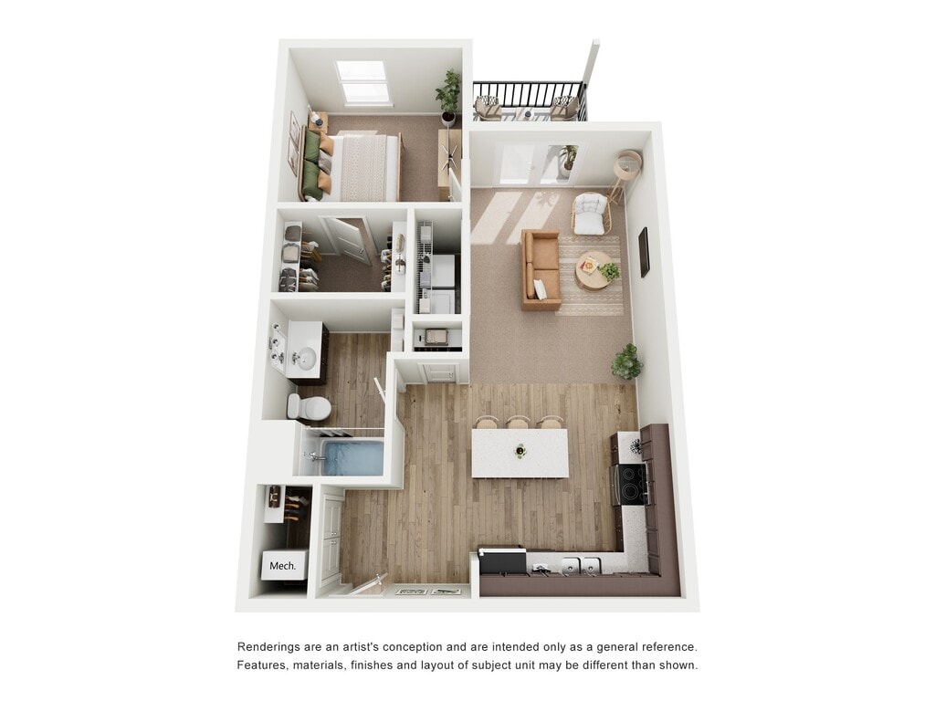 Apartment Model: One Bedroom One Bath with DenFrom $1,5451 Bedroom, 1 Bath, 800 sq ftAvailable May 15, 2026Floor plans are artist's rendering. All dimensions are approximate. Actual product and specifications may vary in dimension or detail. Not all features are available in every rental home. Please see a representative for details.