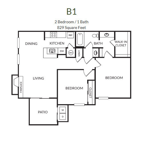 Apartment Model: B12 Bedroom, 1.5 Bath, 829 sq ftUnavailable![]()