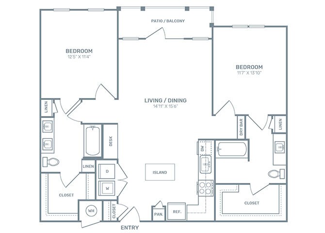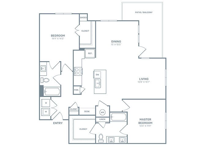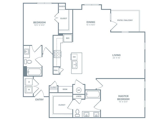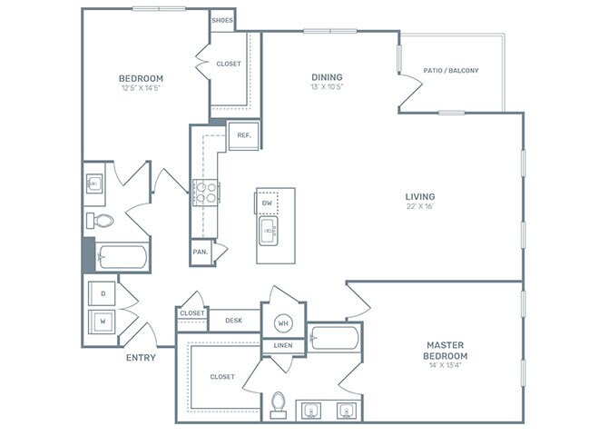 2 Beds, 2 Baths, 1460 sq ftLargest 2 BedroomThis is the largest 2 Bedroom at this PropertyModel Gallery