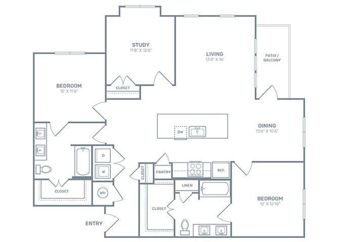 Apartment Model: B12 Bedroom, 2 Bath, 1171-1212 sq ftUnavailable![]()