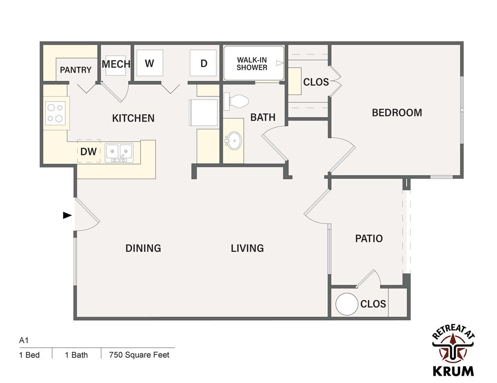 Apartment Model: A1From $1,4251 Bedroom, 1 Bath, 750 sq ftAvailable Now![]()