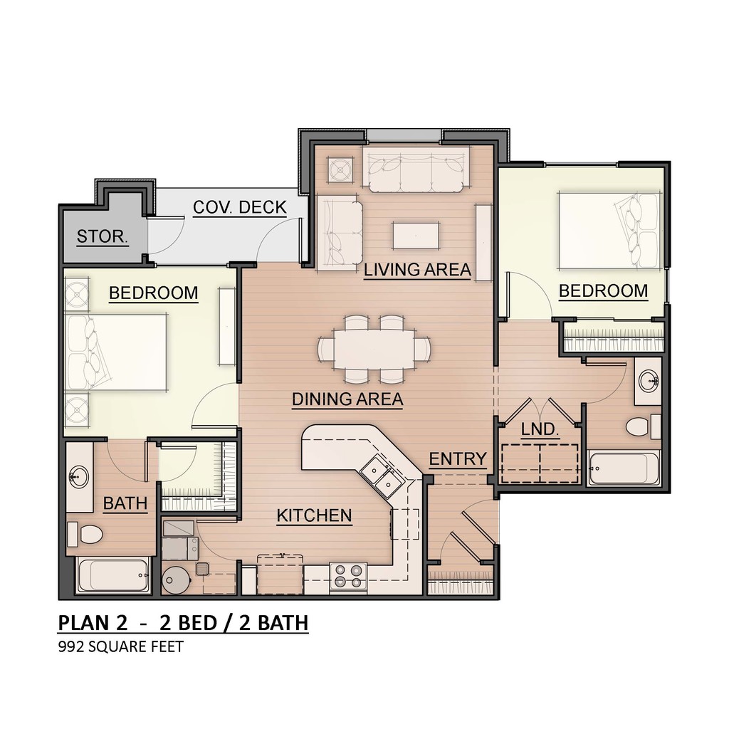 2 Beds, 2 Baths, 958 sq ftAvailable NowModel Gallery