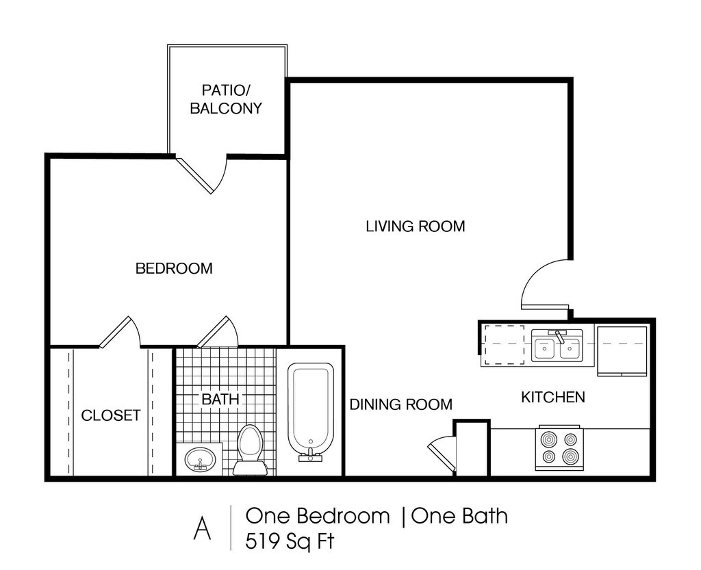 Apartment Model: A1From $6501 Bedroom, 1 Bath, 519 sq ftAvailable Now![]()