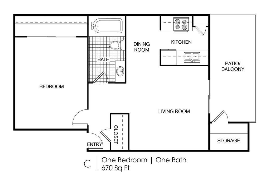 Apartment Model: A3From $7601 Bedroom, 1 Bath, 670 sq ftAvailable Now![]()